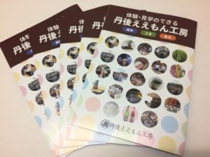 新しいパンフレットが遂に完成しました! 丹後の旅館や道の駅などに置いていますので、是非手に取っていただき、お立ち寄りいただければと思います。 個性豊かな工房の主が、皆様のご訪問を心よりお待ちしています。